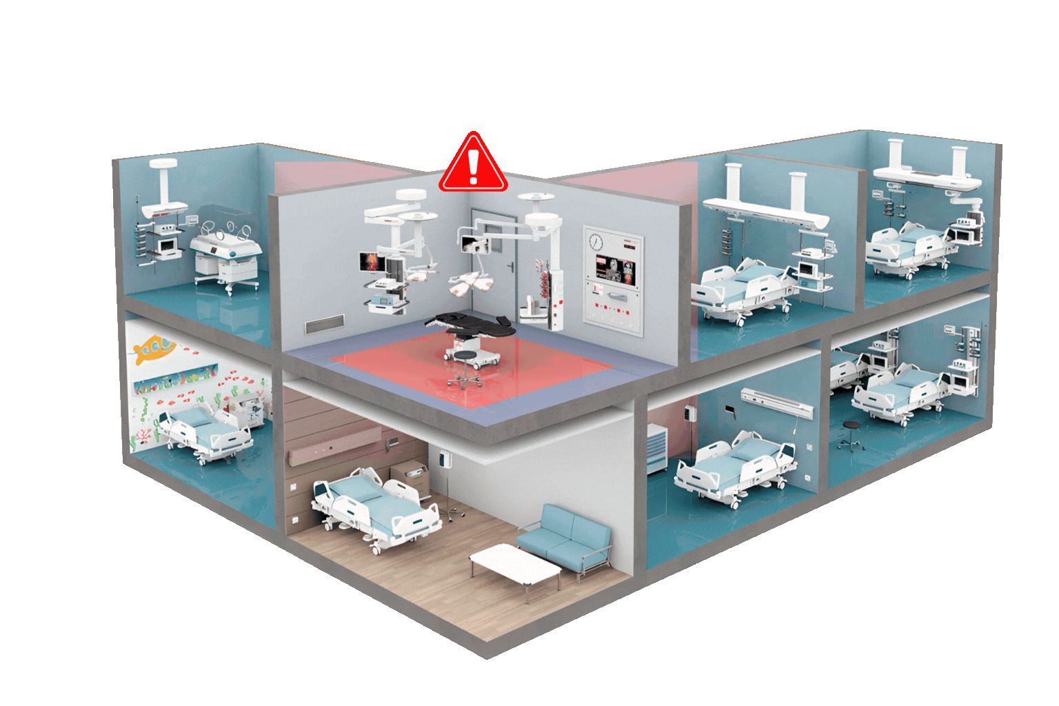 The system supports infection control, regulatory compliance, and operational reliability in healthcare environments.