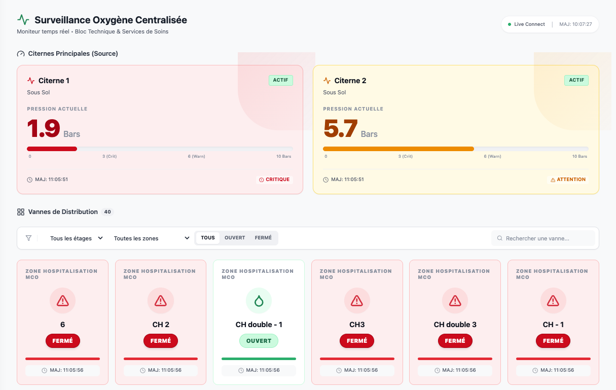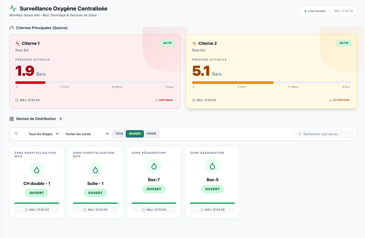 All oxygen data is visualized on a single platform with live status, alerts, and analytics.